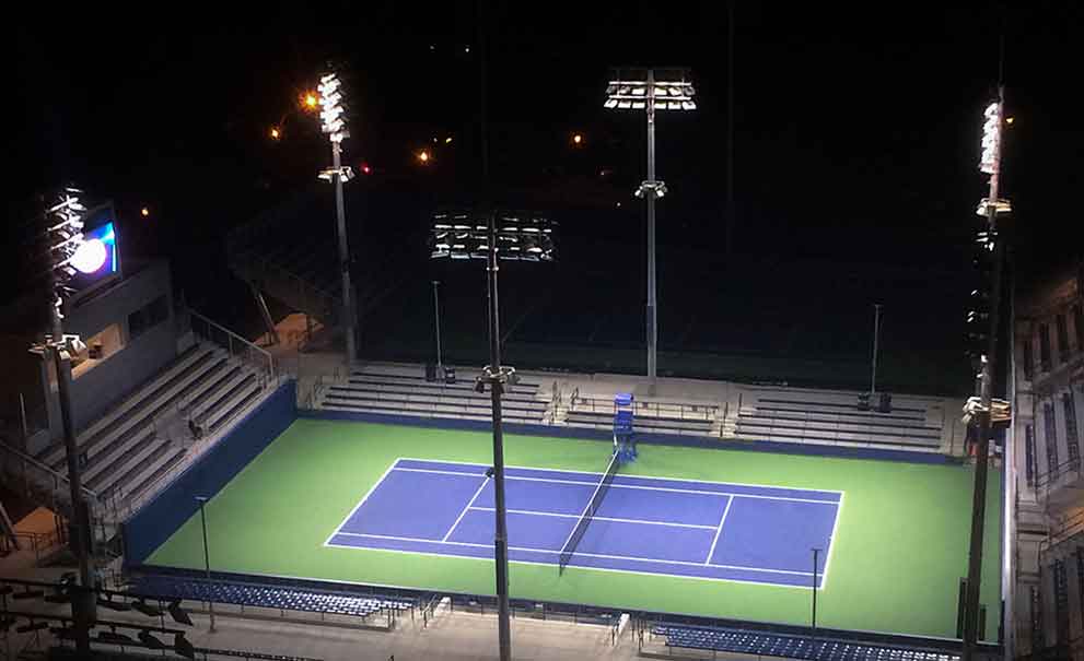 Court luminaires, such as LED floodlights, increase the visibility of the tennis balls, lines, and opponents, which allows the players to respond and act quickly..
