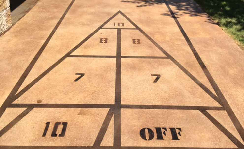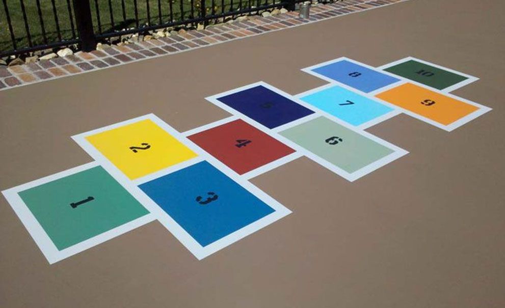 Add to your court games using unique color paint specifically tailored for your court surface. Master Systems can creatively imprint games onto your court. Add kid’s games to any court or playground, like 4 Square, Tetherball, Shuffleboard, Bean Bag Toss, Hopscotch, and many others. We have a variety of stencils and can help you decide what coloring combination and paint system is right for your court surface.